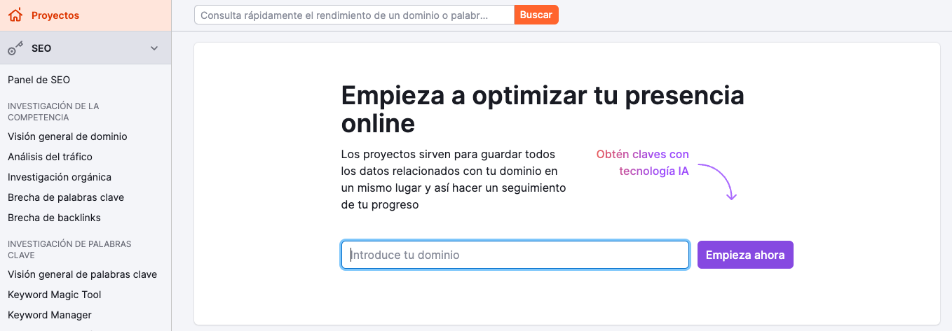 Para empezar a beneficiarte de tu nuevo asistente SEO, todo lo que necesitas es tener proyectos configurados.