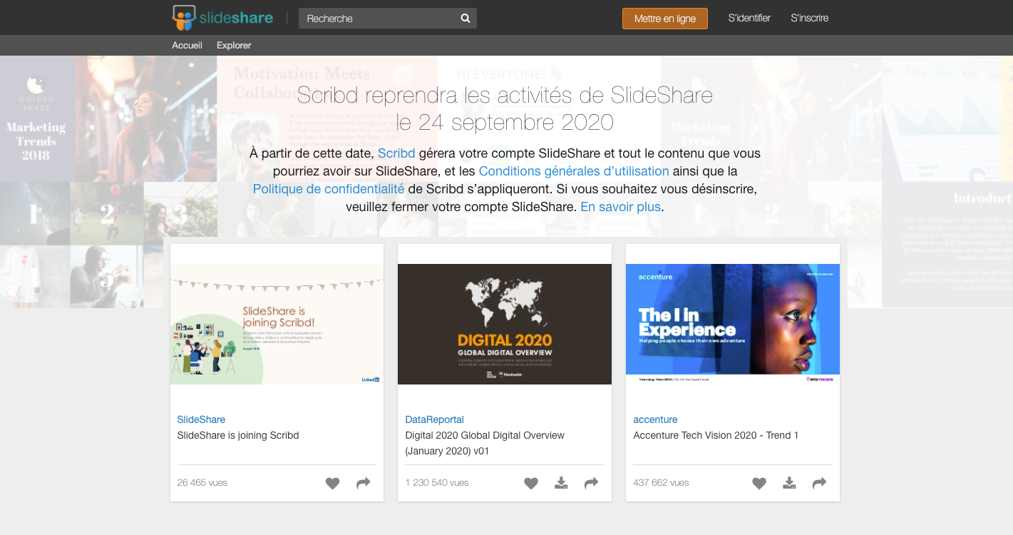 Slideshare héberge des milliers de "slides" couvrant à peu près tous les sujets que vous puissiez imaginer. Trouver une présentation que vous connaissez déjà peut souvent vous mener sur un chemin de découverte vers d'autres contenus inspirants.