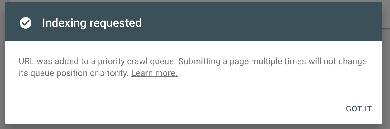Cliccalo e la tua pagina verrà aggiunta a una queue per l'indicizzazione.